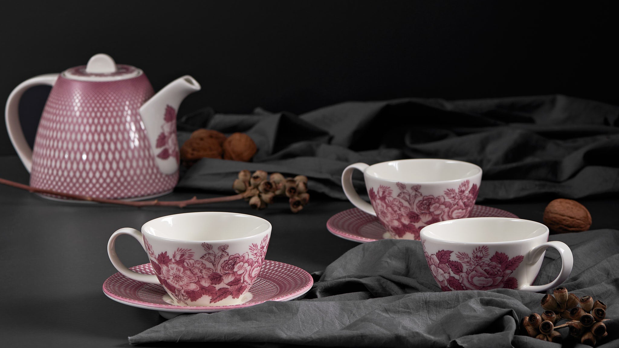 Mala, meaning “a garland of flowers,” is a quiet homage to two traditions of beauty—India’s floral rituals and Europe’s romantic porcelain. This hand-decorated stoneware collection brings together vintage roses and delicate borders, weaving Indian craft with European romance into timeless pieces for the everyday table. Garlands of small flowers frame the bowls and plates, while lush roses bloom on the mugs.